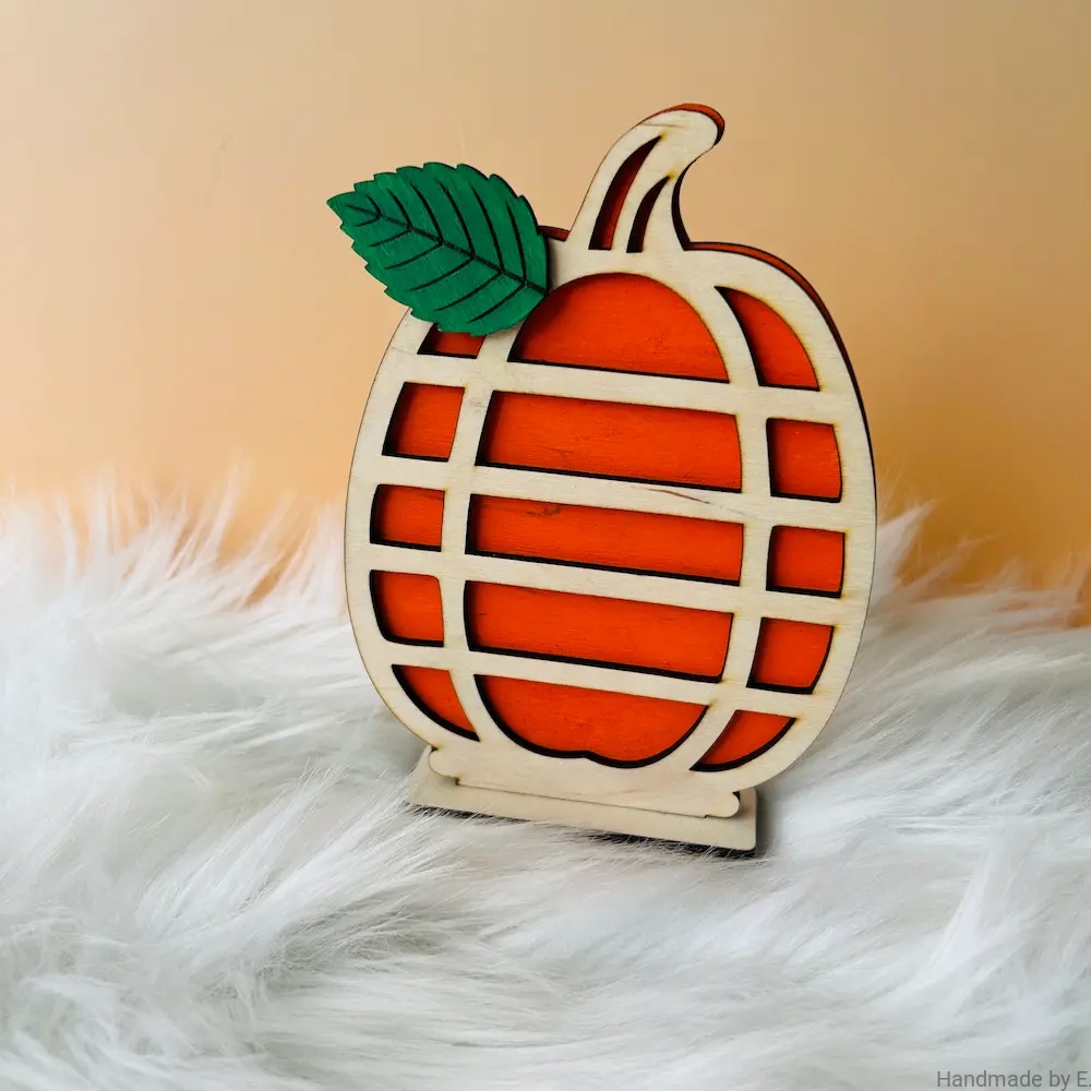 Stwórz wyjątkowy klimat jesieni w swoim domu z drewnianą dynią dekoracyjną 3D o nowoczesnym, geometrycznym wzorze. Ręcznie malowana sklejka z eleganckim motywem pasków i zielonym listkiem idealnie wkomponuje się w każdą aranżację, będąc wyjątkową ozdobą stołu, półki czy parapetu. Jej unikalny charakter sprawia, że jest doskonałym wyborem na Halloween oraz jesienne spotkania.